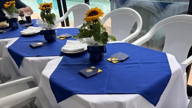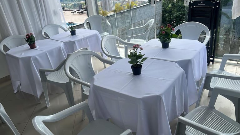 Mesas, Cadeiras, Bistrôs, Toalhas e mais.
